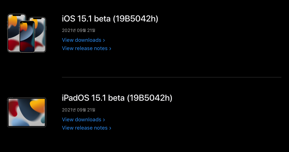 9월 22일, 애플은 iOS & iPadOS 15.1의 첫 번째 베타 테스트를 시작했으며 Apple은 iPhone 저장 공간 관련 버그를 긴급 패치하기 위해 iOS 15.0.1 버전을 배포할 수 있습니다